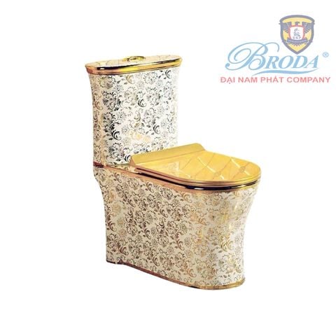 Bồn cầu một khối, nắp đóng êm mạ vàng PVD cao cấp.