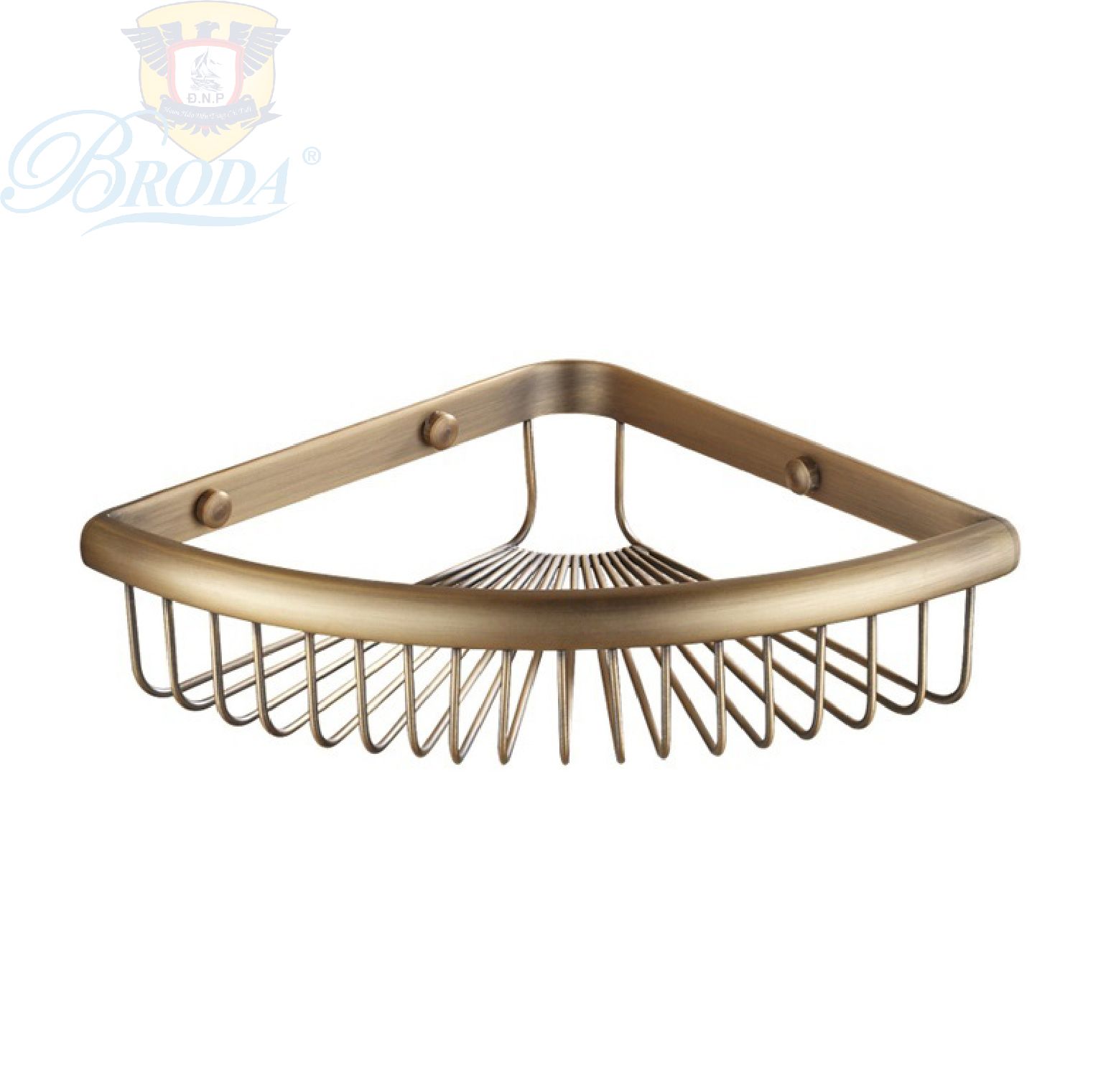 Đây là một phụ kiện nhà tắm dùng để đựng xà phòng, dầu gội, sữa tắm... được thiết kế để lắp đặt ở góc tường, mang phong cách cổ điển của thương hiệu BRODA.